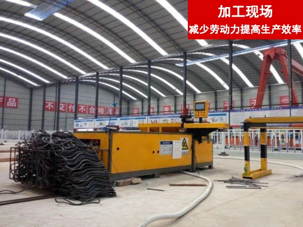 格柵拱架作為隧道拱架的一種常用于公路鐵路隧道,礦山巷道施工的初期支護(hù)中,而 8 字筋是格柵拱架中的重要組成,其形狀復(fù)雜, 數(shù)量巨大,加工難度大,工人勞動(dòng)強(qiáng)度高。濟(jì)寧市旭輝數(shù)控機(jī)械有限公司一直致力于數(shù)控鋼筋彎箍機(jī)的研制,我們針對(duì) 8 字筋的特殊形 狀和要求,在原基礎(chǔ)上加以改進(jìn),讓原本復(fù)雜的加工變得更加簡(jiǎn)單、標(biāo)準(zhǔn)、節(jié)能。我們深入加工現(xiàn)場(chǎng)了解傳統(tǒng)加工的諸多難處, 在設(shè)計(jì)當(dāng)中加入現(xiàn)代化制造的先進(jìn)理念和元素,那就是精益化生產(chǎn), 各個(gè)工序的產(chǎn)品沒有堆積(不占地方),產(chǎn)品不需要人力運(yùn)轉(zhuǎn)運(yùn)輸, 讓我們生產(chǎn)的產(chǎn)品意義上的流動(dòng)起來,讓我們的生產(chǎn)現(xiàn)場(chǎng)空間更好的利用,整個(gè)生產(chǎn)線整潔和諧,企業(yè)形象得到根本上的改善。